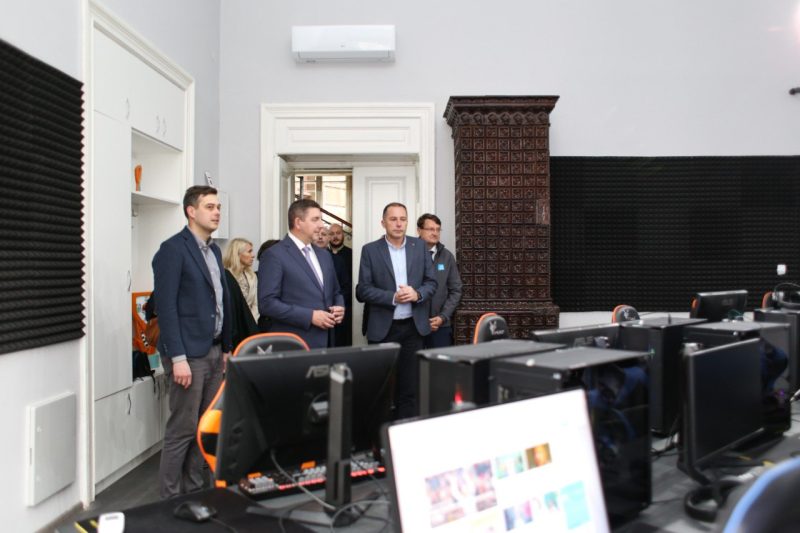 Під час оглядової екскурсії делегація відвідала сучасний клас кіберспорту, де ректор Ярослав Свищ розповів про специфіку підготовки студентів та досвід проведення змагань з кіберспорту на базі університету.