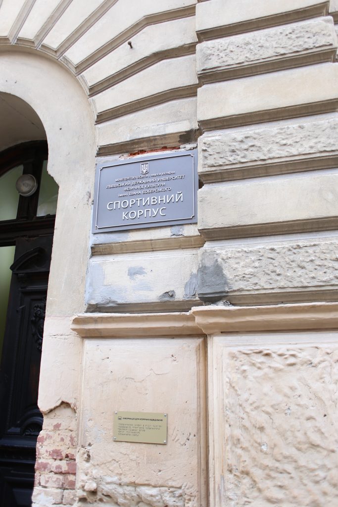 Перед спортивним корпусом Львівського державного університету фізичної культури імені Івана Боберського, що на вулиці Дудаєва, встановлено шрифти Брайля та тактильну плитку — важливі елементи інклюзивного простору, які допомагають людям із порушеннями зору безпечно пересуватися та брати активну участь в освітньому процесі.