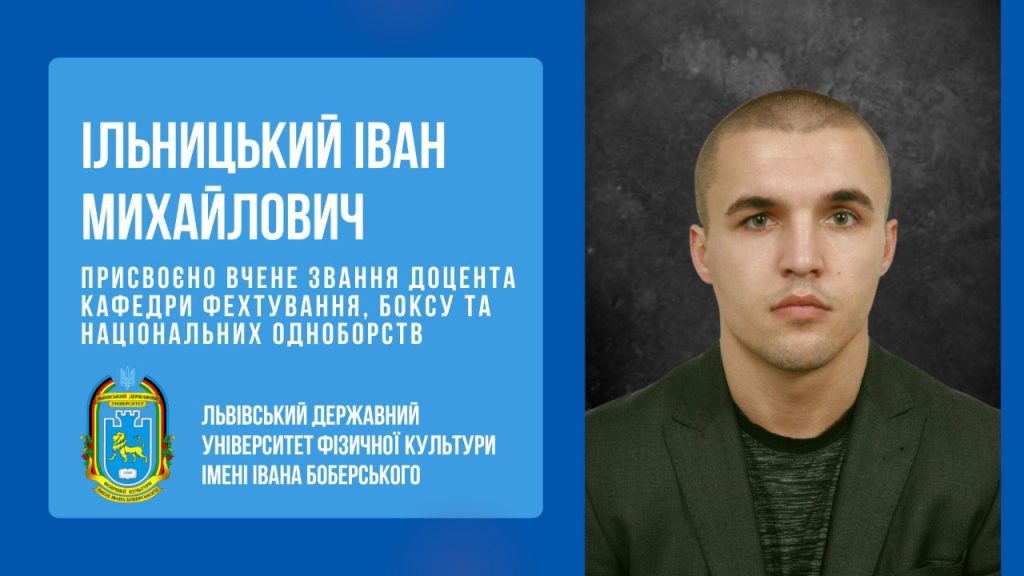 Ільницькому Івану Михайловичу, кандидату наук з фізичного виховання і спорту, присвоєно вчене звання доцента кафедри фехтування, боксу та національних одноборств Львівського державного університету фізичної культури імені Івана Боберського.